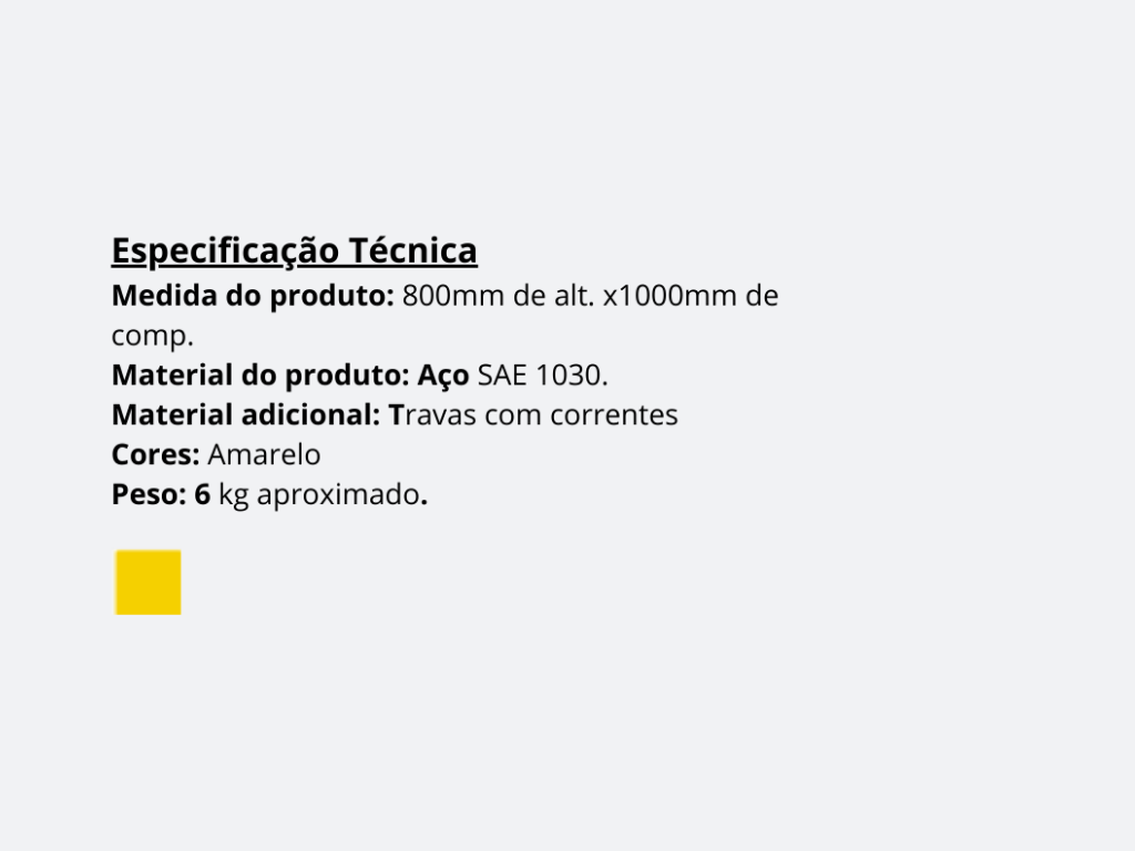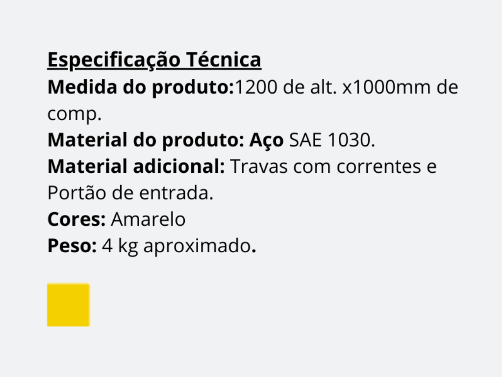 Fabricado com materiais de alta resistência e acabamento em pintura eletrostática a pó, o equipamento oferece durabilidade, resistência a impactos e proteção contra corrosão, mesmo em rotinas pesadas e sob condições climáticas adversas. Seu encaixe é prático e seguro, permitindo fácil montagem e desmontagem conforme a necessidade.